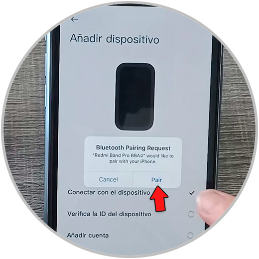 Comenzará el proceso de vinculación. Cuando aparezca una ventana emergente en la pantalla del iPhone para vincular, pulsa en “Pair”.