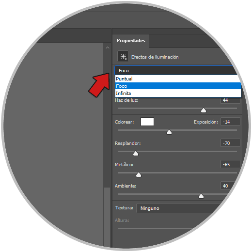 Aquí podremos variar el efecto de iluminación cambiando el tipo de foco así como sus propiedades y así crear una fuente de iluminación manualmente