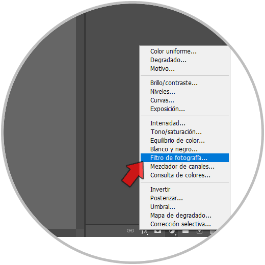 Vamos a darle un retoque final a nuestra imagen de forma rápida pulsando en una nueva capa de ajuste de "Filtro de fotografía"