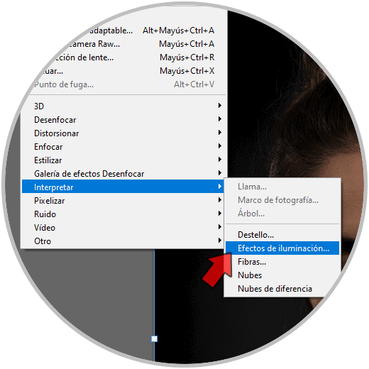 Vamos a añadir Efectos de iluminación si vamos a "Filtro - Interpretar - Efectos de iluminación"