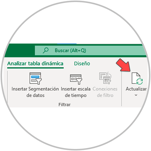¿Cómo hago para actualizar una tabla dinámica en Excel? Este proceso es como te avanzamos muy sencillo, y es posible que a estas alturas ya conozcas los pasos a seguir. Cómo ya has aprendido, al realizar una tabla dinámica se habilita una opción nueva en el menú de Excel: "Analizar tabla dinámica". Bajo esta opción del menú de Excel, se encuentra el botón de actualizar la tabla dinámica, tal y como puedes ver en la imagen de abajo.