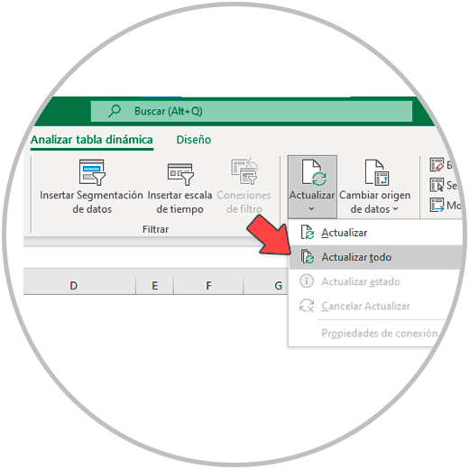 Desde el botón de "Actualizar" podremos actualizar nuestra tabla dinámica, o actualizar todas las tablas dinámicas que tengamos en el documento de Excel con el que estemos trabajando. Si quieres que todas las tablas dinámicas se actualicen de tu hoja, y de tu documento de Excel se actualice, solo tienes que dar en la opción " Actualizar todo".