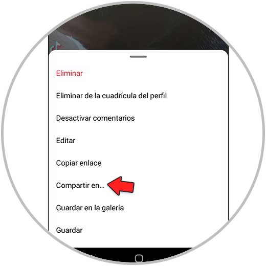 Ahora, en el desplegable de opciones, selecciona “Compartir en”: