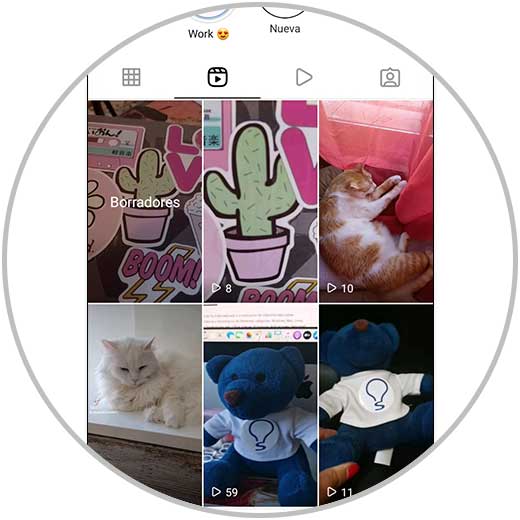 Aquí vas a poder ver Tus Reels, Reels guardados o Reels que te gustan pulsando sobre las pestañas en la parte superior.