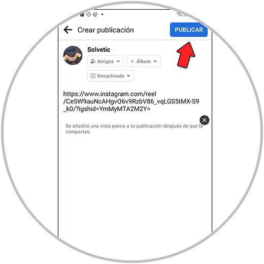 El enlace del Reel quedará pegado. Ahora solo tienes que pulsar “Compartir” y habrás terminado.
