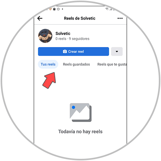 Si quieres ver Reels a los que has dado me gusta, guardados o creados por ti en Facebook, pulsa en el icono de perfil en la esquina superior derecha.