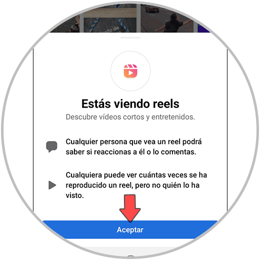 Aquí te van a aparecer algunas de las características de los Reels de Facebook y su funcionamiento. Pulsa en “Aceptar” para continuar.