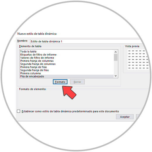 Para poder ir configurando el estilo, vamos seleccionado primero qué parte de la tabla queremos cambiar desde las opciones que nos ofrece Excel y hacemos clic en formato