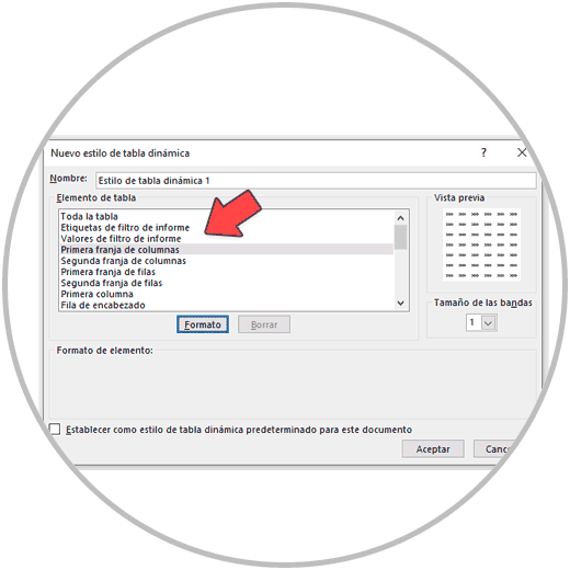 Desde aquí ya podemos ir creando nuestro estilo, un estilo único para toda la tabla, o podemos ir configurando parte por parte la tabla dinámica; Podemos dar un estilo a las etiquetas de filtro, podemos crear otro estilo para los valores, para la primera franja, para la fila de encabezado, ...