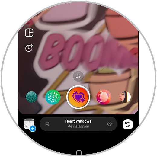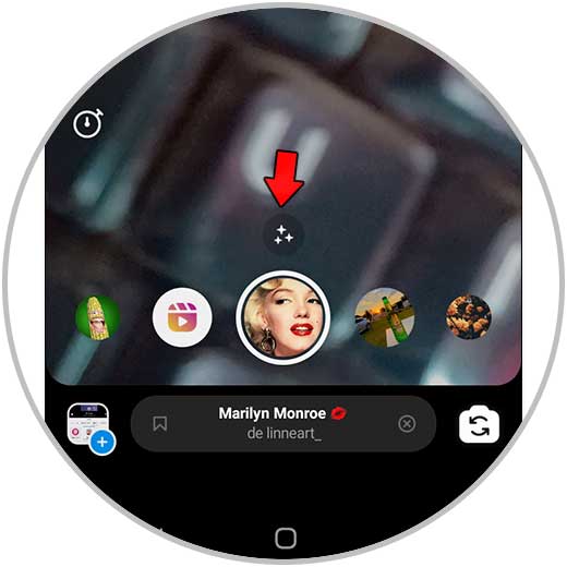 En la parte inferior de la pantalla, encima del botón central, vas a ver un icono de estrellitas de efectos. Pulsa sobre éste.