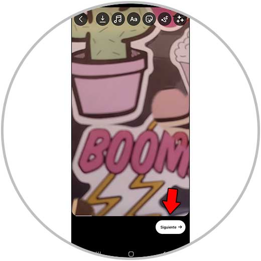 Ahora, verás tu Reel con filtro creado y en la parte superior de la pantalla puedes añadir más efectos como texto, música, dibujar, etc… Una vez hecho, selecciona “Siguiente”.