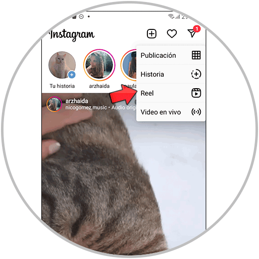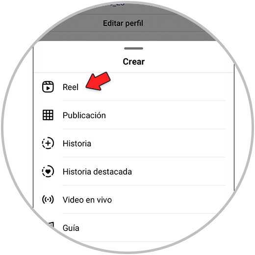 Ahora, en el desplegable de opciones, selecciona “Reels”.