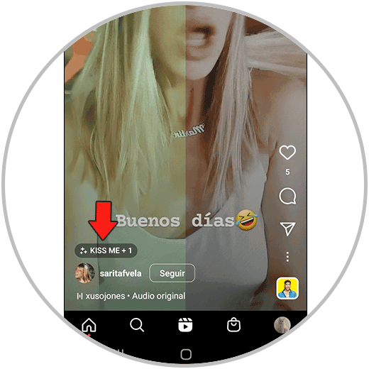 Para ver los Reels, tienes que ir deslizando la pantalla principal hacia arriba, los Reels que utilizan filtro aparecen señalados con el nombre del filtro remarcado en la esquina inferior izquierda del mismo. Si quieres ver que Reels se han grabado con este filtro, pulsa sobre el nombre.