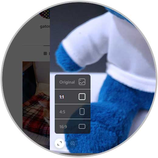 Al publicar en Instagram podremos elegir la proporción usada o bien directamente "Original" ya que ya la tenemos configurada desde Photoshop.