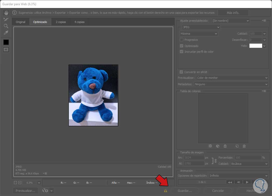 Guardamos nuestra imagen con "Guardar" y ya la tendremos lista para subir a Instagram