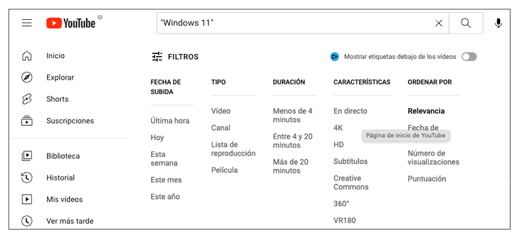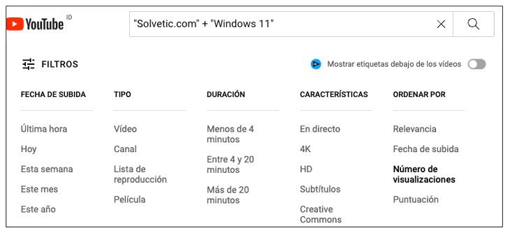 6. Cómo buscar por duración o visualizaciones en canal de YouTube