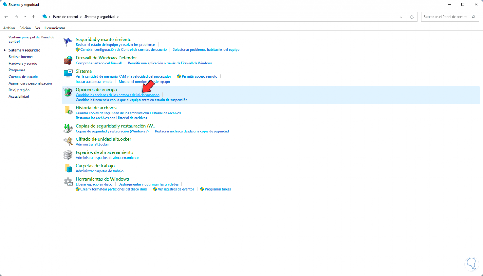 Damos clic en “Cambiar las acciones de los botones de inicio/apagado”, se abrirá lo siguiente: