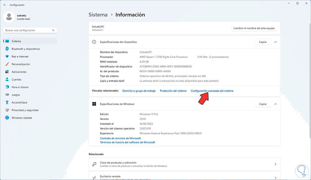Ahora disponemos de algunas opciones para trabajar con esta utilidad, en primer lugar haremos uso de un archivo de volcado de modo de usuario, para esto vamos a “Inicio – Configuración – Sistema – Información”: