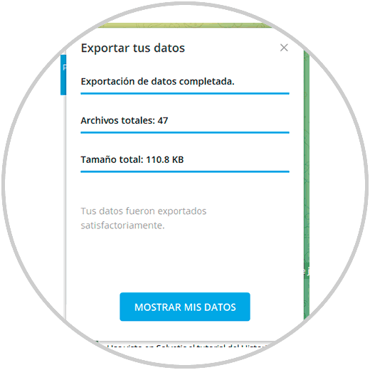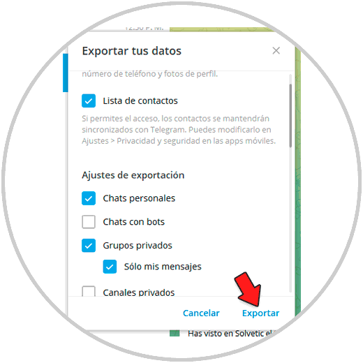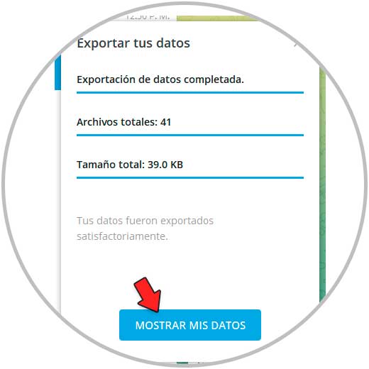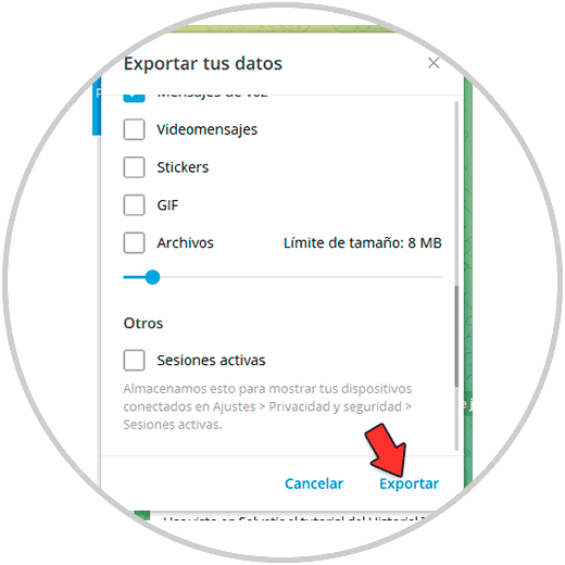 Después de esto en la parte inferior damos clic en “Exportar datos de Telegram”: