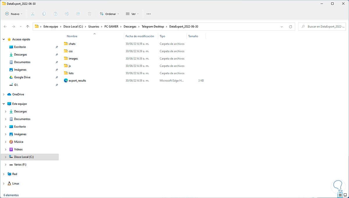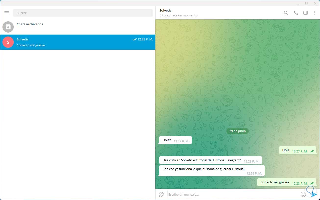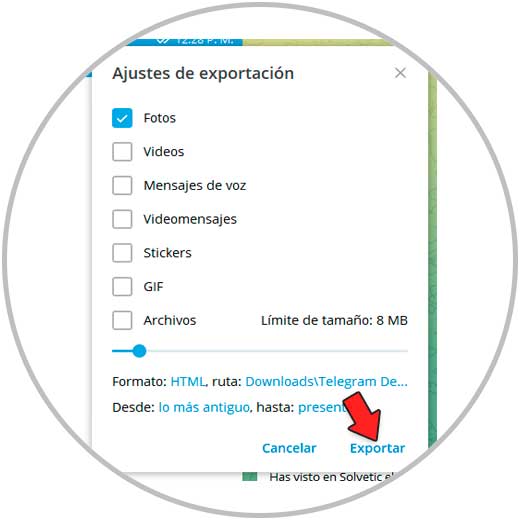 De esta manera podemos exportar el historial de chats o elementos en Telegram y contra con un respaldo de ellos.