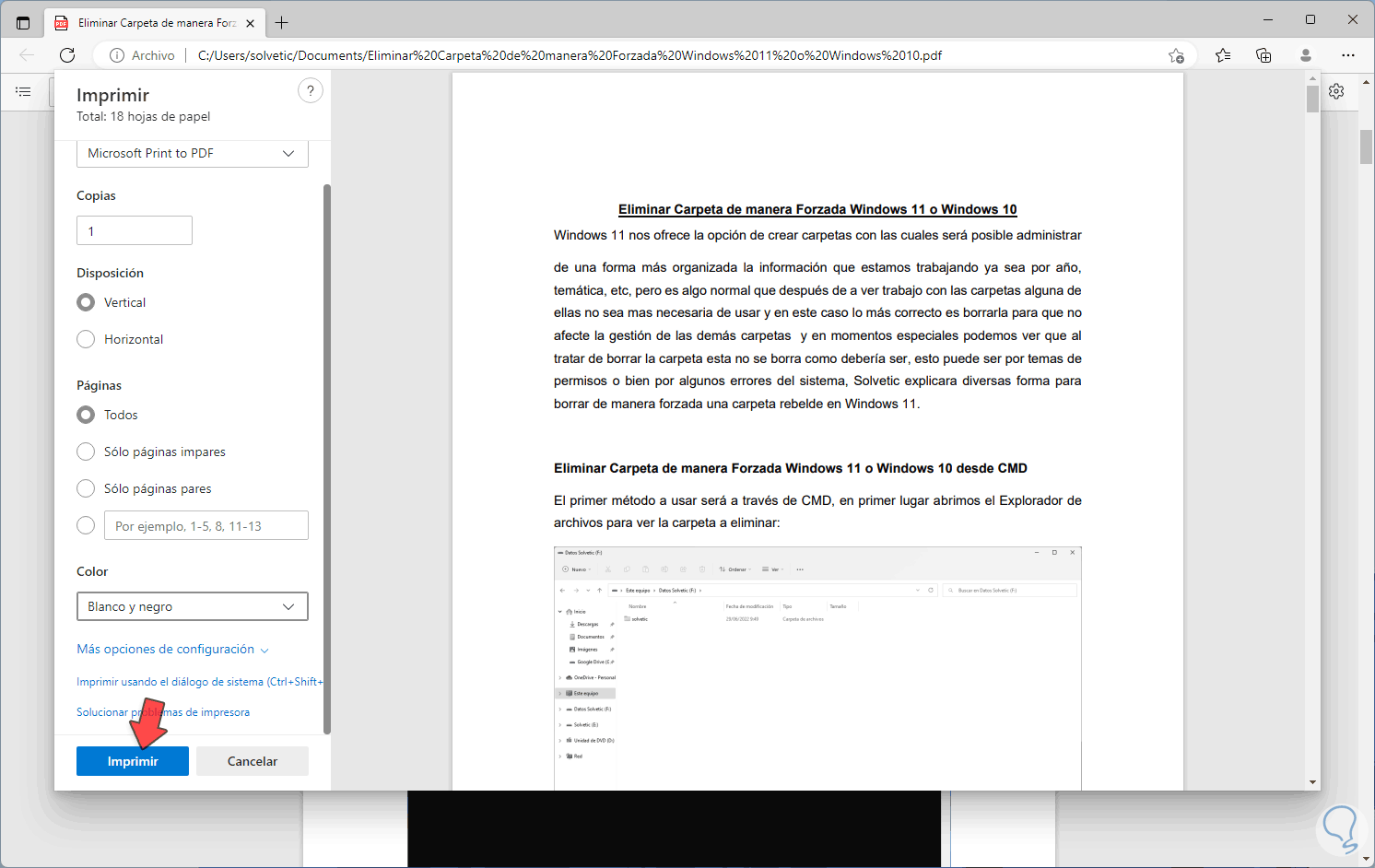 Damos clic en "Imprimir" y seleccionamos donde guardar el archivo: