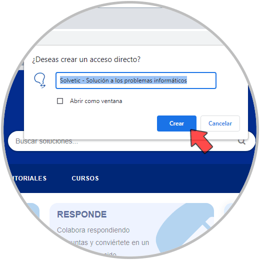 Damos clic en "Crear" para disponer del acceso directo. Abre el sitio web desde el acceso directo.