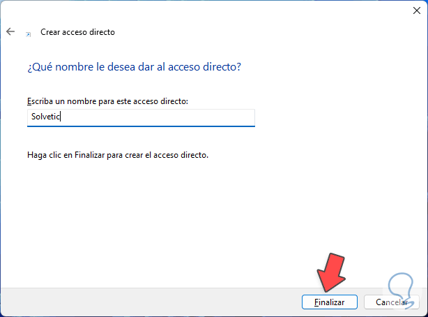 Damos clic en Siguiente para asignar un nombre y aplicar los cambios: