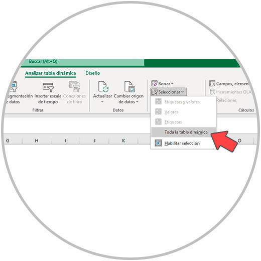 De esta forma estaremos seleccionado la tabla dinámica entera. Una opción interesante para no cometer errores, en especial si se trata de una tabla dinámica muy grande.