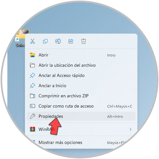 Podemos ver el diseño con miniatura del acceso, ahora damos clic derecho sobre el acceso directo y seleccionamos "Propiedades":