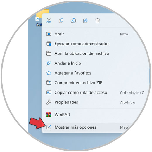 Damos clic derecho sobre el acceso directo y vamos a “Mostrar más opciones”: