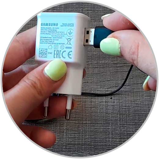 Acercamos el extremo conector del cargador a los conectores que están detrás de la esfera.