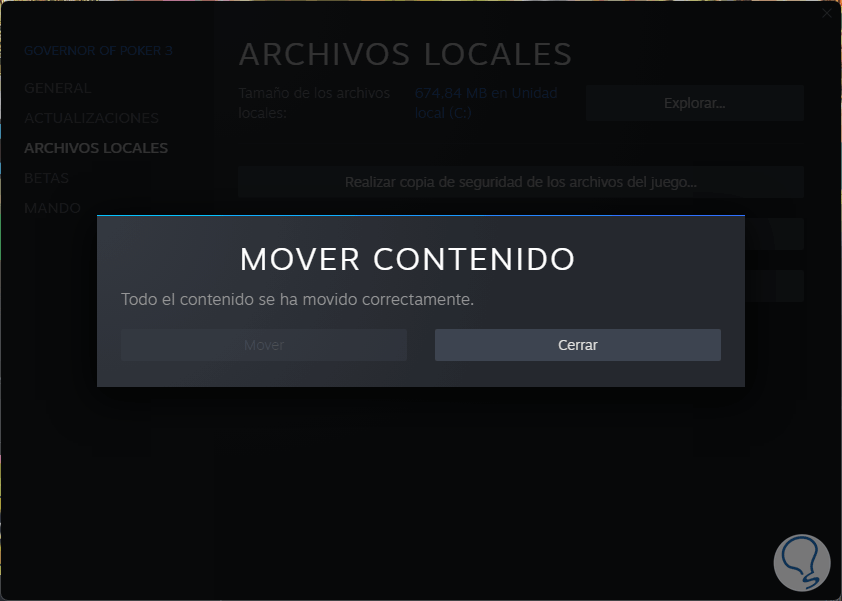 En "Archivos locales" damos clic en "Mover carpeta de instalación":