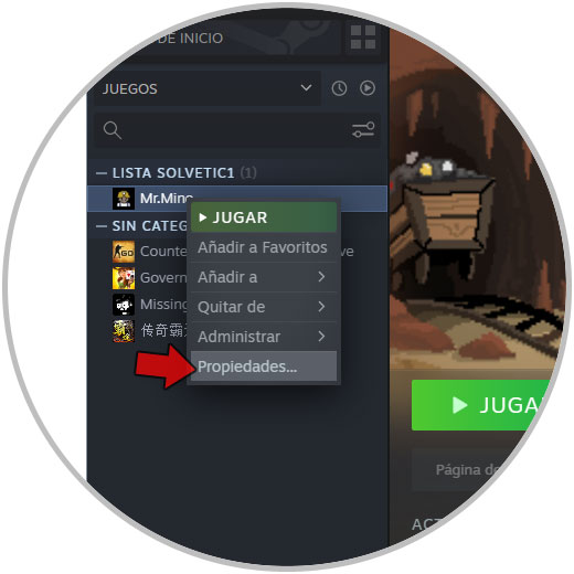Para realizar este proceso abrimos Steam, damos clic derecho sobre el juego y seleccionamos "Propiedades":