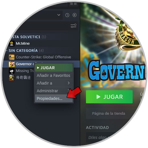 Abrimos Steam, damos clic derecho sobre el juego y seleccionamos la opción "Propiedades":