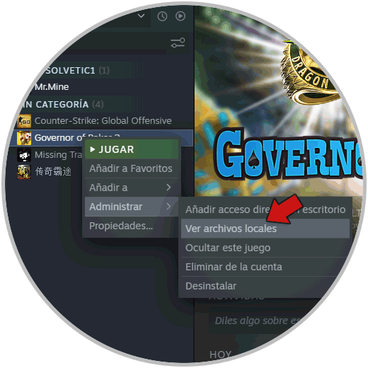 Damos clic derecho sobre el juego y seleccionamos "Administrar - Ver archivos locales":