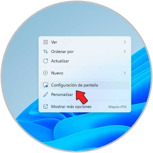 Para cambiar la resolución damos clic derecho en el escritorio y seleccionamos "Configuración de pantalla":