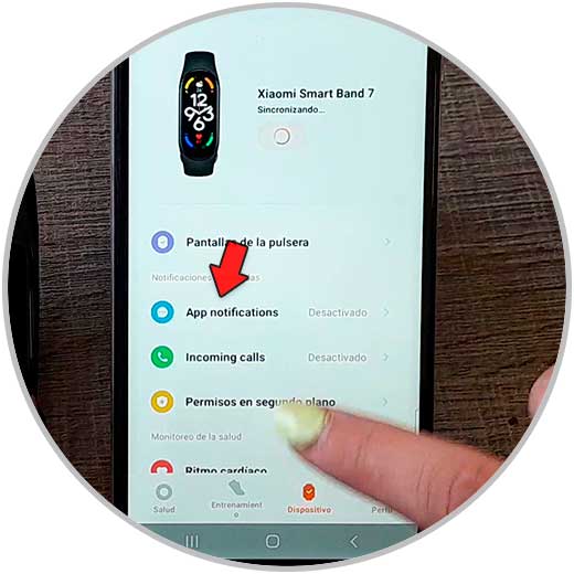 Una vez hecho, accedemos a la app “Mi Fitnes” y en la pestaña “Dispositivo” seleccionamos “Notificaciones de Apps”.
