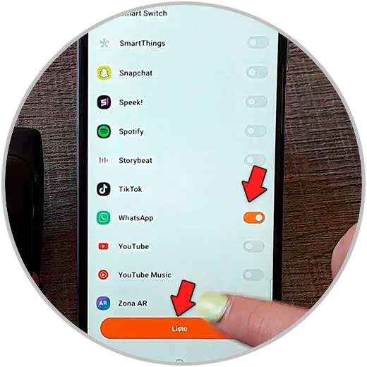En el listado, activa la pestaña para la App de “WhatsApp” y pulsa “Listo”.