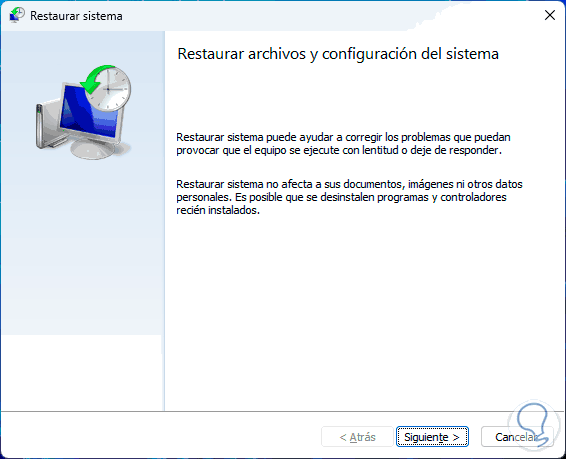 Con este paso buscamos restaurar Windows 11 a un punto anterior donde todo el sistema trabajaba de forma correcta.