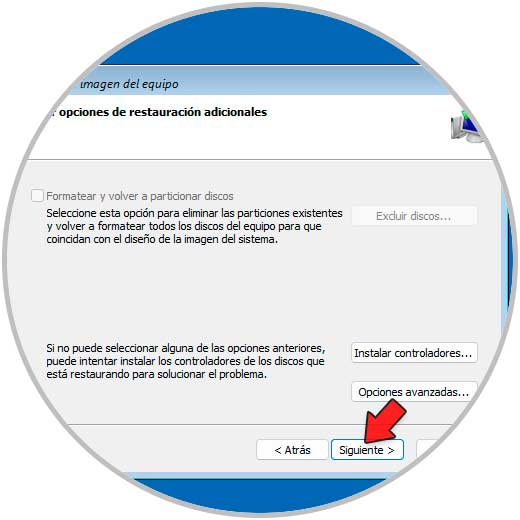 Se abrirá la siguiente ventana. Damos clic en Siguiente para seleccionar el punto de restauración:
