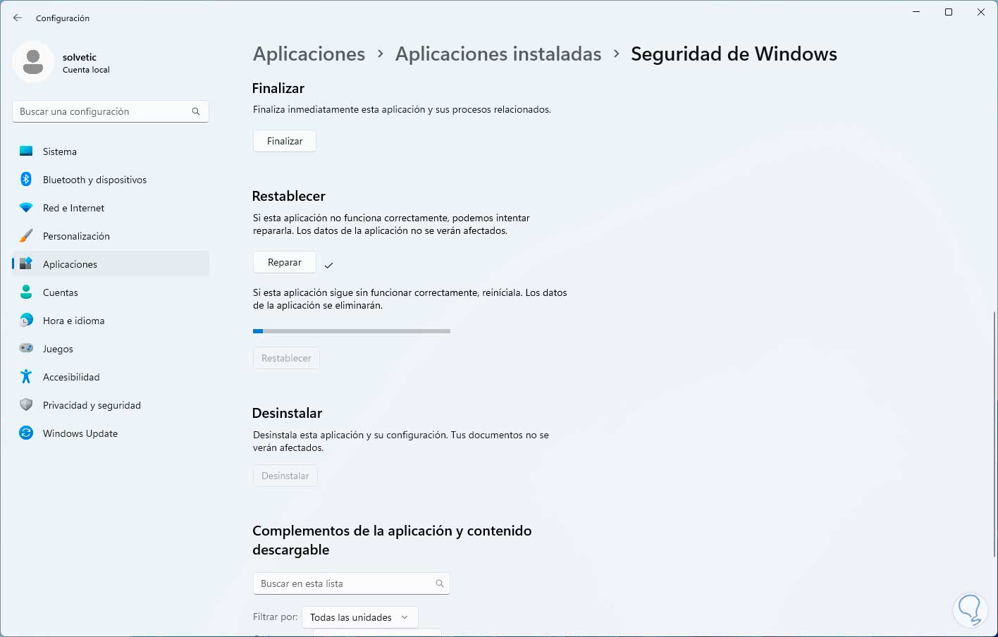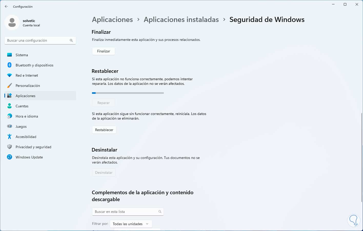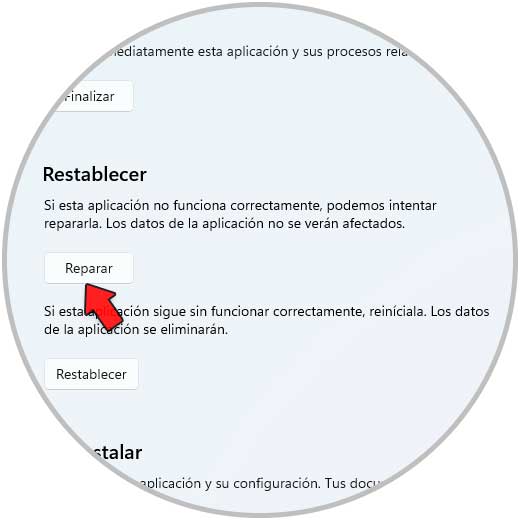 3. Protección contra Virus y Amenazas en Seguridad de Windows 11 No Funciona solución reparando la aplicación