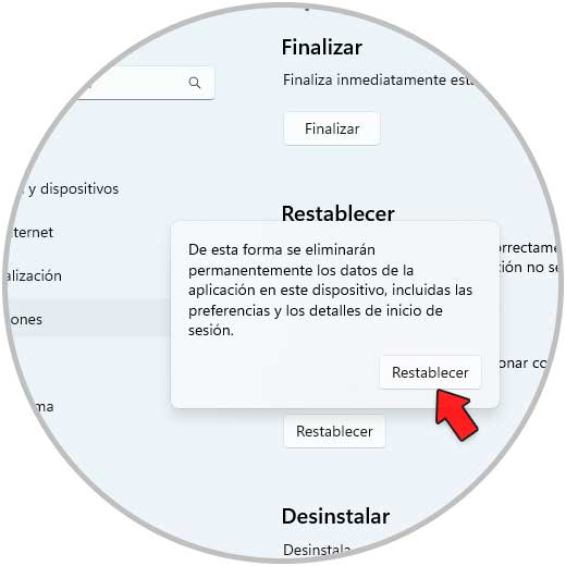 Damos clic en "Restablecer" para volver a los valores por defecto de la aplicación, debemos confirmar la acción: