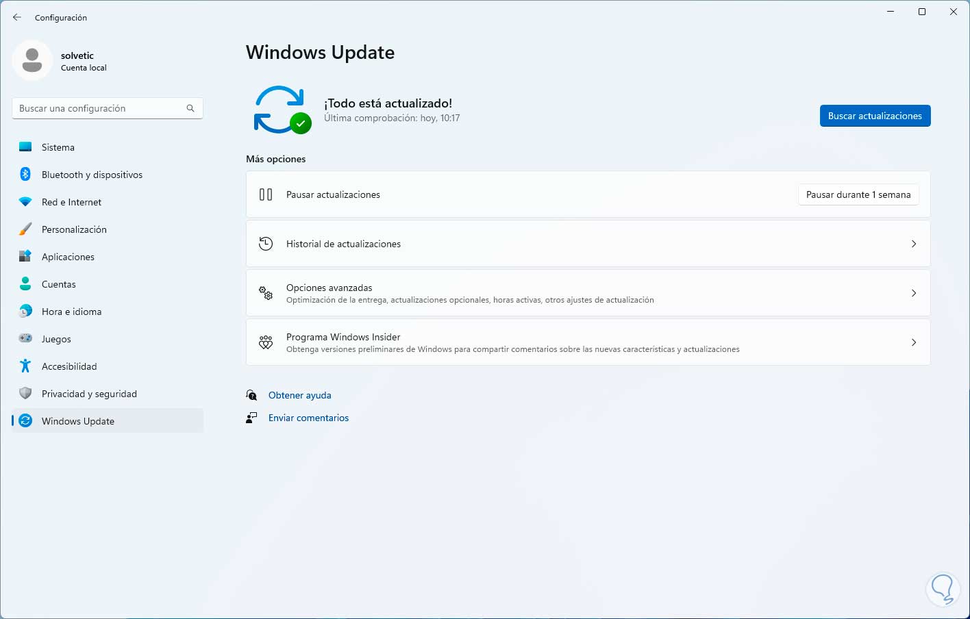 Para comprobar las actualizaciones, vamos a "Inicio - Configuración - Windows Update":