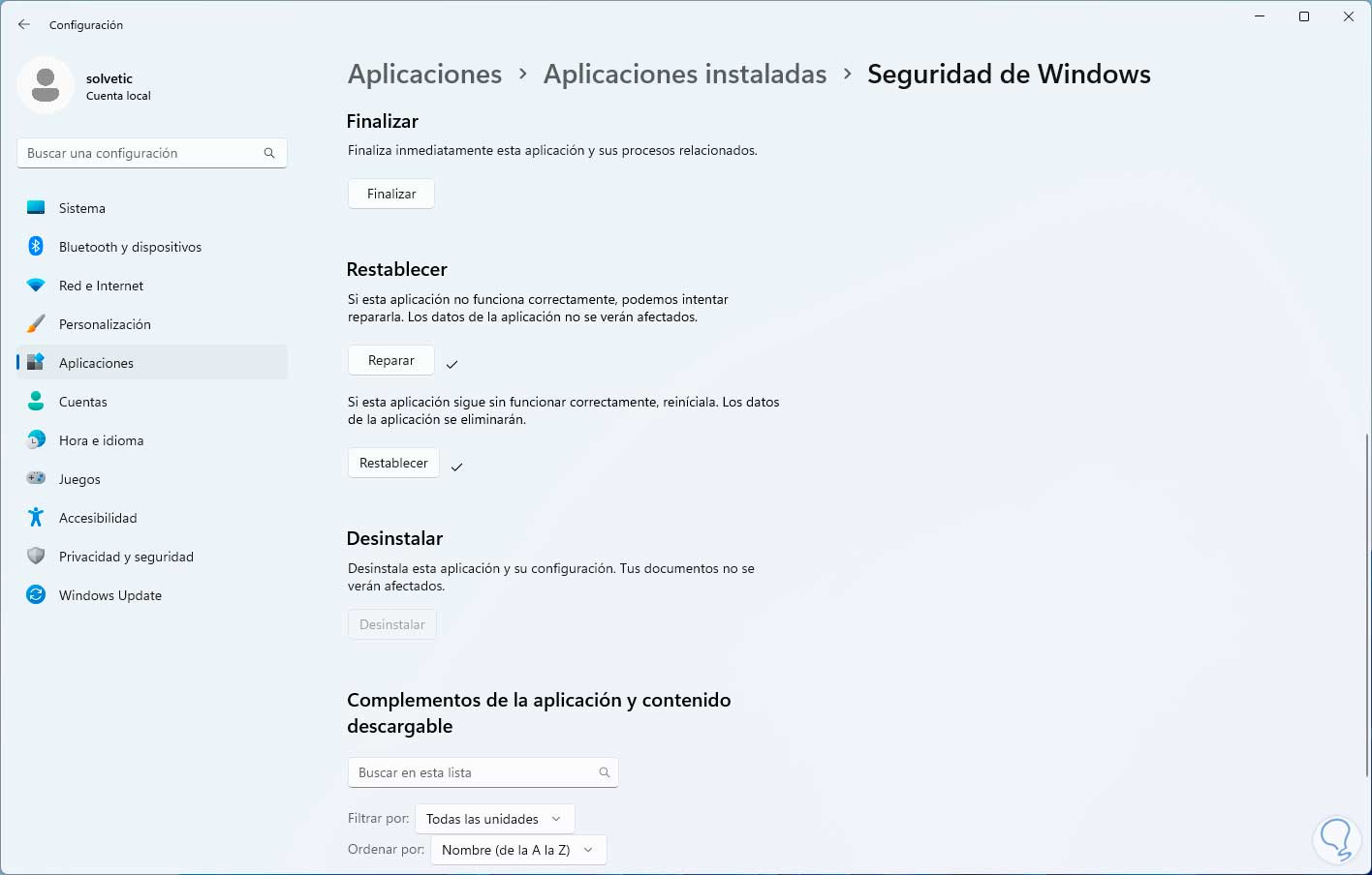 Para esas operaciones vamos a "Inicio - Configuración - Aplicaciones - Aplicaciones instaladas":
