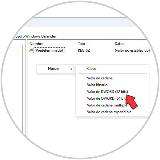 Damos clic derecho en algún lugar y seleccionamos "Nuevo - Valor de DWORD (32 bits)":