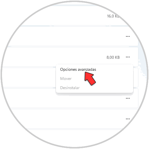 Damos clic sobre el menú contextual de "Seguridad de Windows" y seleccionamos "Opciones avanzadas":