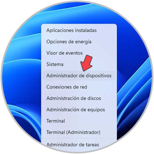 Vamos a abrir el Administrador de dispositivos desde el Menú inicio: