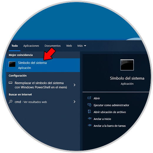 Ahora veremos como realizar esto en Windows 10, el proceso es idéntico, en primer lugar abrimos CMD de forma normal: