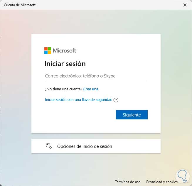 Damos clic en "Iniciar sesión con una cuenta de Microsoft en su lugar" y en la ventana emergente ingresamos la cuenta de Microsoft a usar: