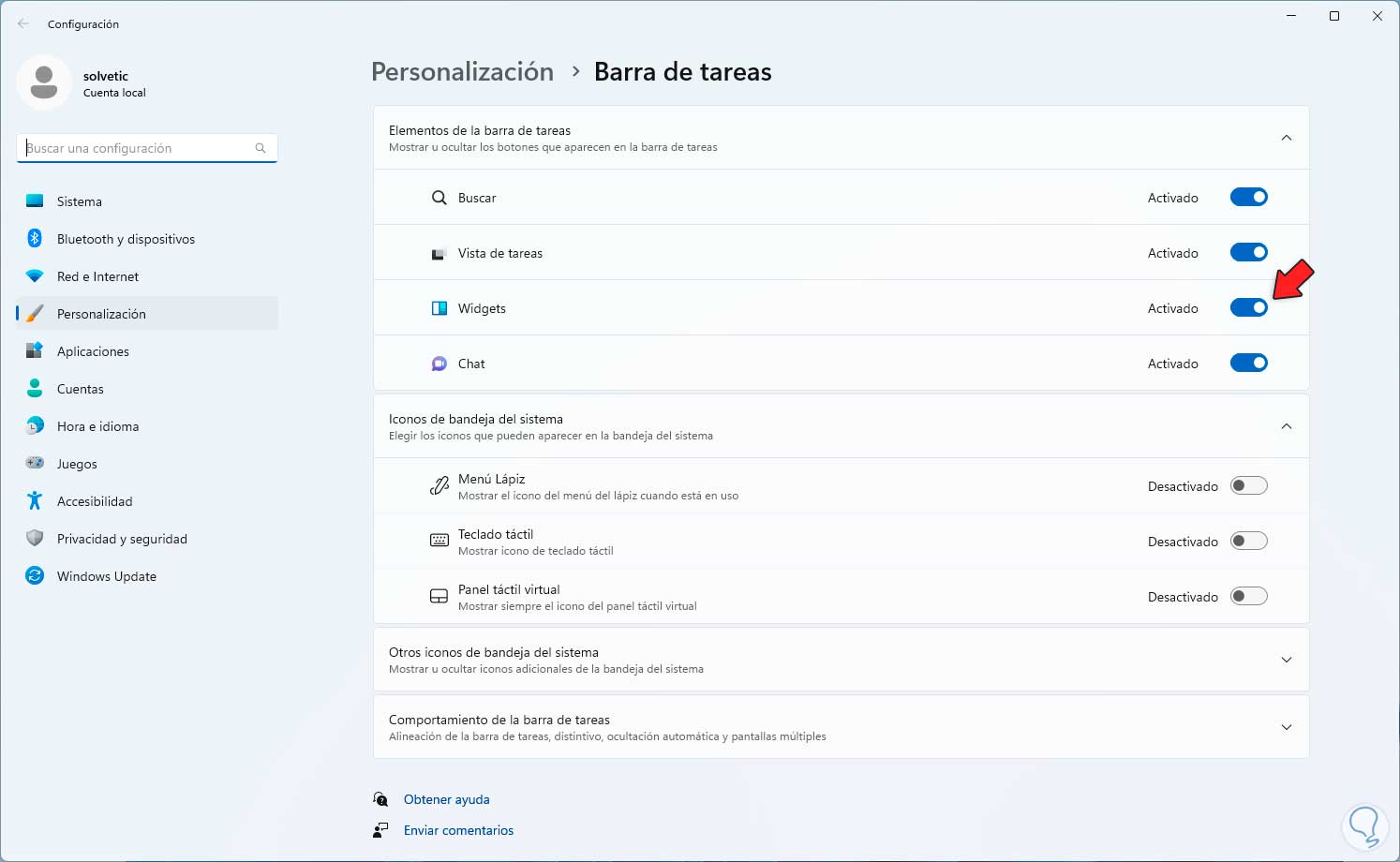 Esta es una de las opciones mas simples ya que con ella buscamos verificar si los Widgets están o no activos en Windows 11.